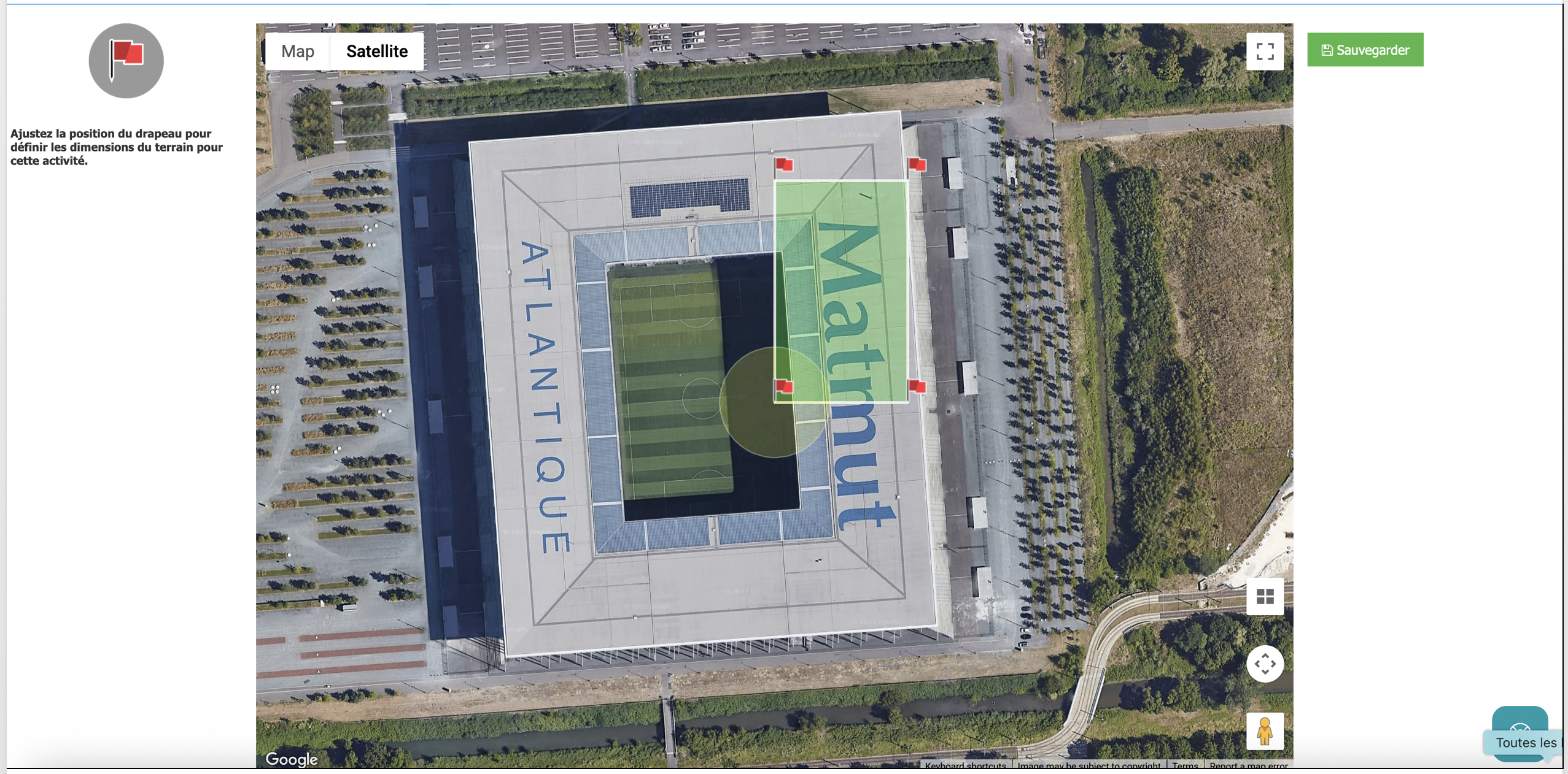 Après avoir choisi le mode "Match", vous arrivez sur une interface connectée avec GoogleMap. Très souvent, la précision n'est pas parfaite. Pour que tout soit parfait, il vous suffit simplement d'ajuster les poteaux de corners en pointant la souris sur chaque drapeau l'un après l'autre.
