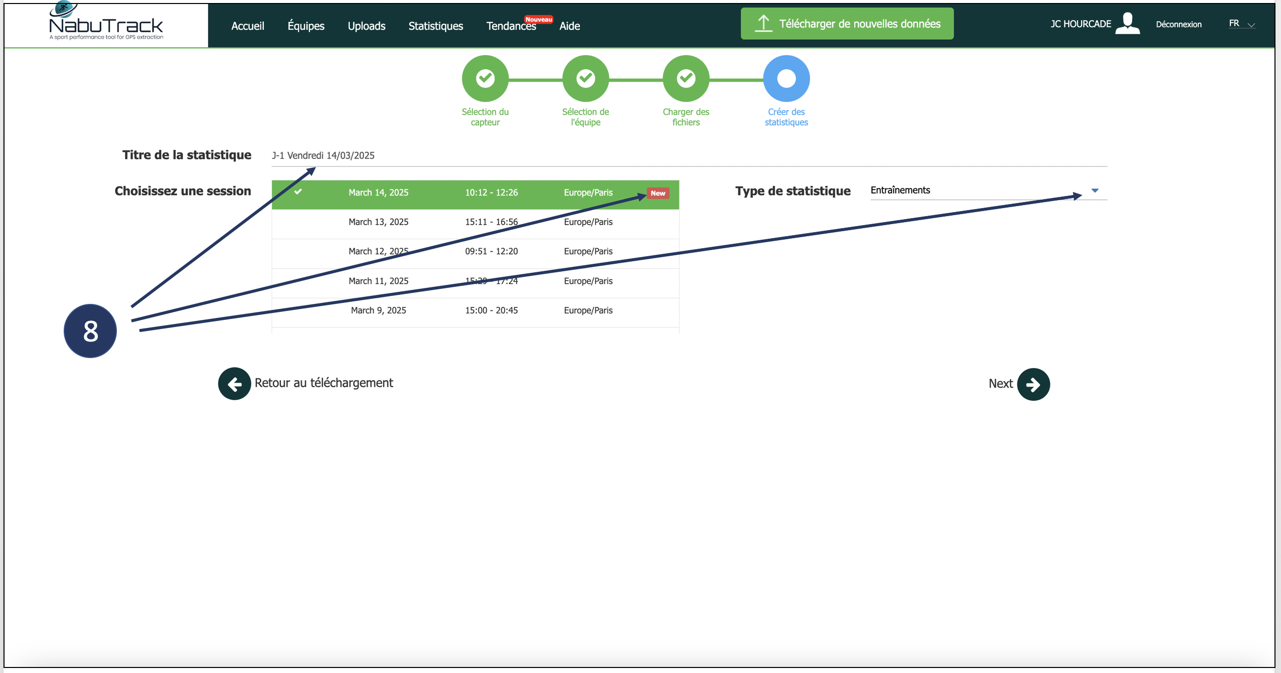 Etape 8 : Les données de nouvelles sessions apparaissent avec la mention "New" dans un rectangle rouge.